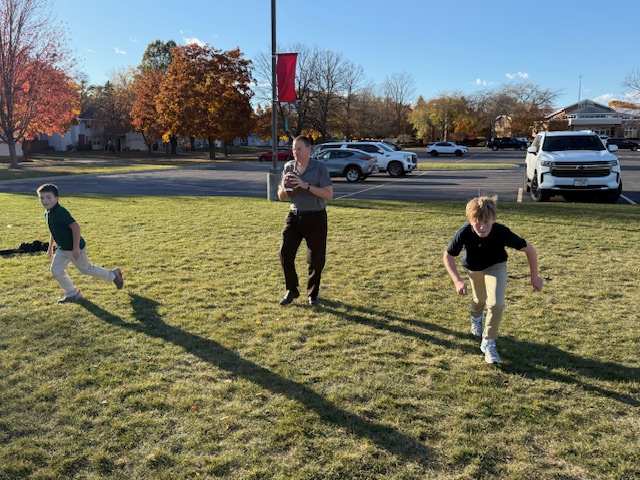 Jordan Love better watch out! James Cullen, Director of Student Services at GRACE, recently stopped by RES for a little afternoon football with the students and had a blast. Go Wolves!